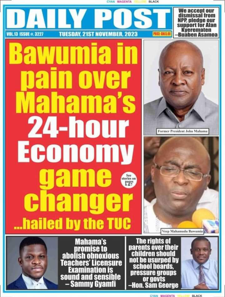 General Ghanaian newspaper headlines: Tuesday 21st November 2023 By KonkonsahGH Monday, November 20, 2023
