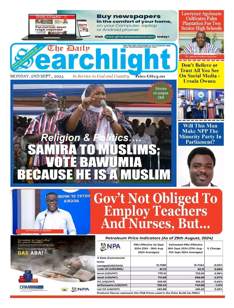 Newspaper Frontpages (Monday, 2nd September, 2024)
